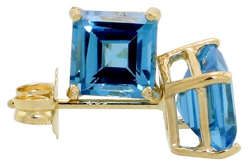 Cheap December Birthstone 14K Gold Basket Set Stud Earrings, w/ 3/4 carat Size (5 mm) Square Princess Cut Natural Blue Topaz Review