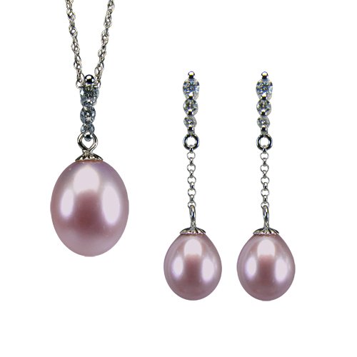 Cheap 14k White Gold Diamond Journey Bail Natural Lavender Cultured Pearl Drop Pendant Necklace & Dangle Earrings Set - by Dahlia Classic Jewelry Collection Review